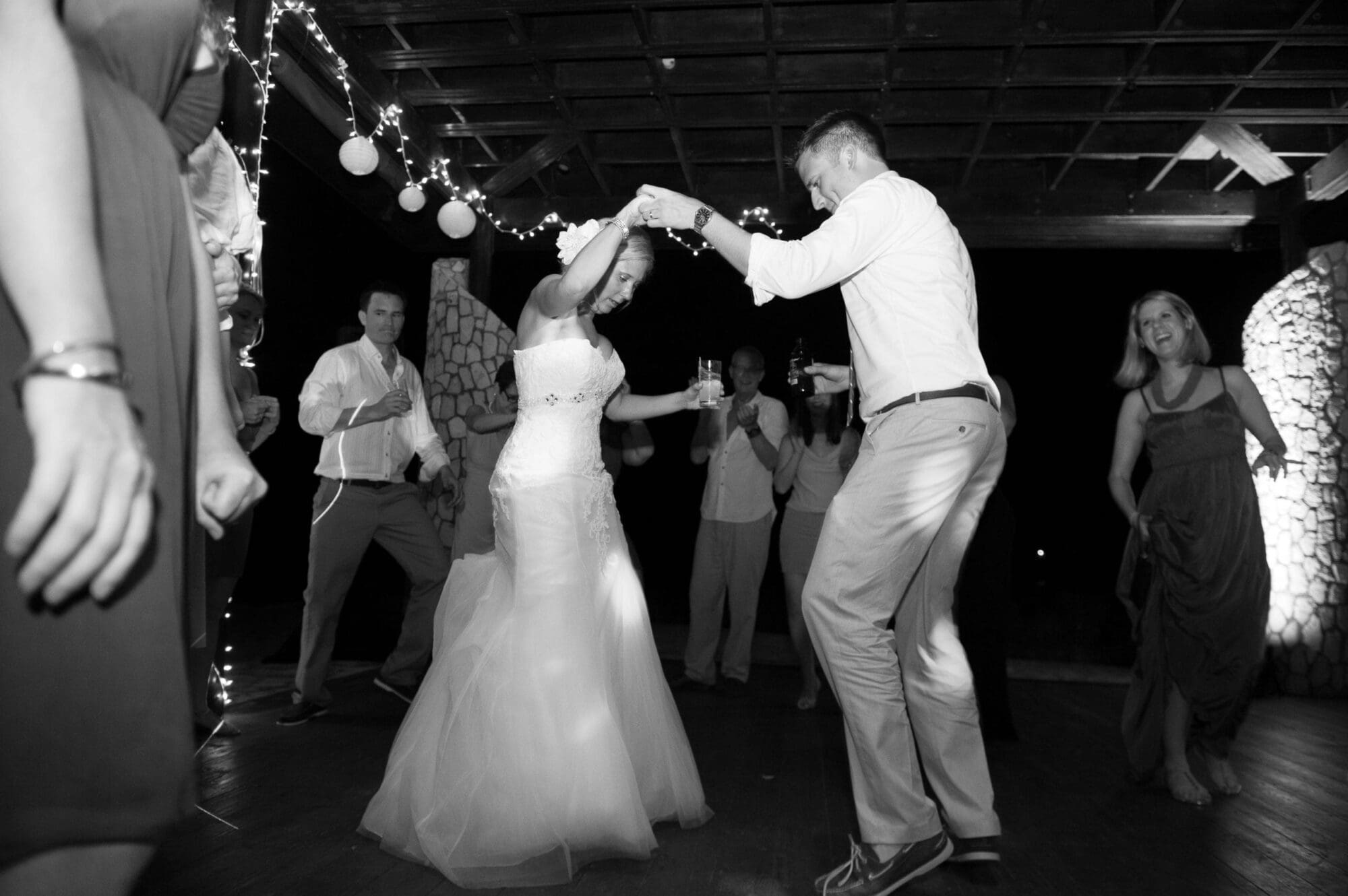 Amidst the starry realm of a moonlit night, the bride and groom waltz with unparalleled grace beneath a canopy of twinkling lights, their radiant joy amplified by the masterful illumination that paints the venue. Guests encircle them, swept into an enchanting ambiance crafted with precision and flair by none other than the legendary Black Tie Productions. :The Event Heroes at Black Tie Productions