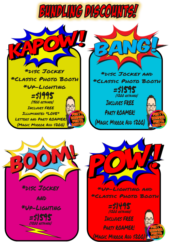 🌟 Event Heroes Assemble with Black Tie Productions! 🌟 Unleash the power of savings with our *Colorful Comic-Style* Promotion—exclusive bundling discounts that are sure to make your next celebration legendary! 💥 Package Deals Unmasked! 💥 – ✨ Dazzling Event Lighting – Ignite the atmosphere and set the stage with radiant visuals! – 💸 UNIQUE PRICING: Smash through ordinary fees! – 🎧 Dynamic Disc Jockeys – Spin epic tracks and elevate excitement levels! – 💥 SUPER SAVINGS: Boom your budget away! – 📸 Epic Photo Booths – Capture memories as bright as a superhero’s smile! – 🔥 SPECIAL RATE EXPLOSION: Transform your costs with amazing discounts! Harness these incredible deals from Black Tie Productions and craft a celebration worthy of heroism. Transform every moment into an epic saga—with you as the star, thanks to Event Heroes! Activate ultimate party potential NOW! 🚀. :The Event Heroes at Black Tie Productions
