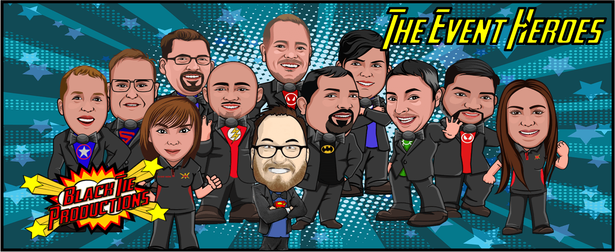 In the vibrant world of heroism and high stakes, enter The Event Heroes—a legendary ensemble cloaked in dazzling superhero-themed attire, each proudly displaying the Black Tie Productions emblem. With courage and charisma, theyre always poised on the edge of action. Be it snatching a quick price quote from the jaws of indecision or summoning a spectacular Michigan wedding DJ to electrify your event, these super-powered professionals stand ready to save your day with flair and finesse!. :The Event Heroes at Black Tie Productions