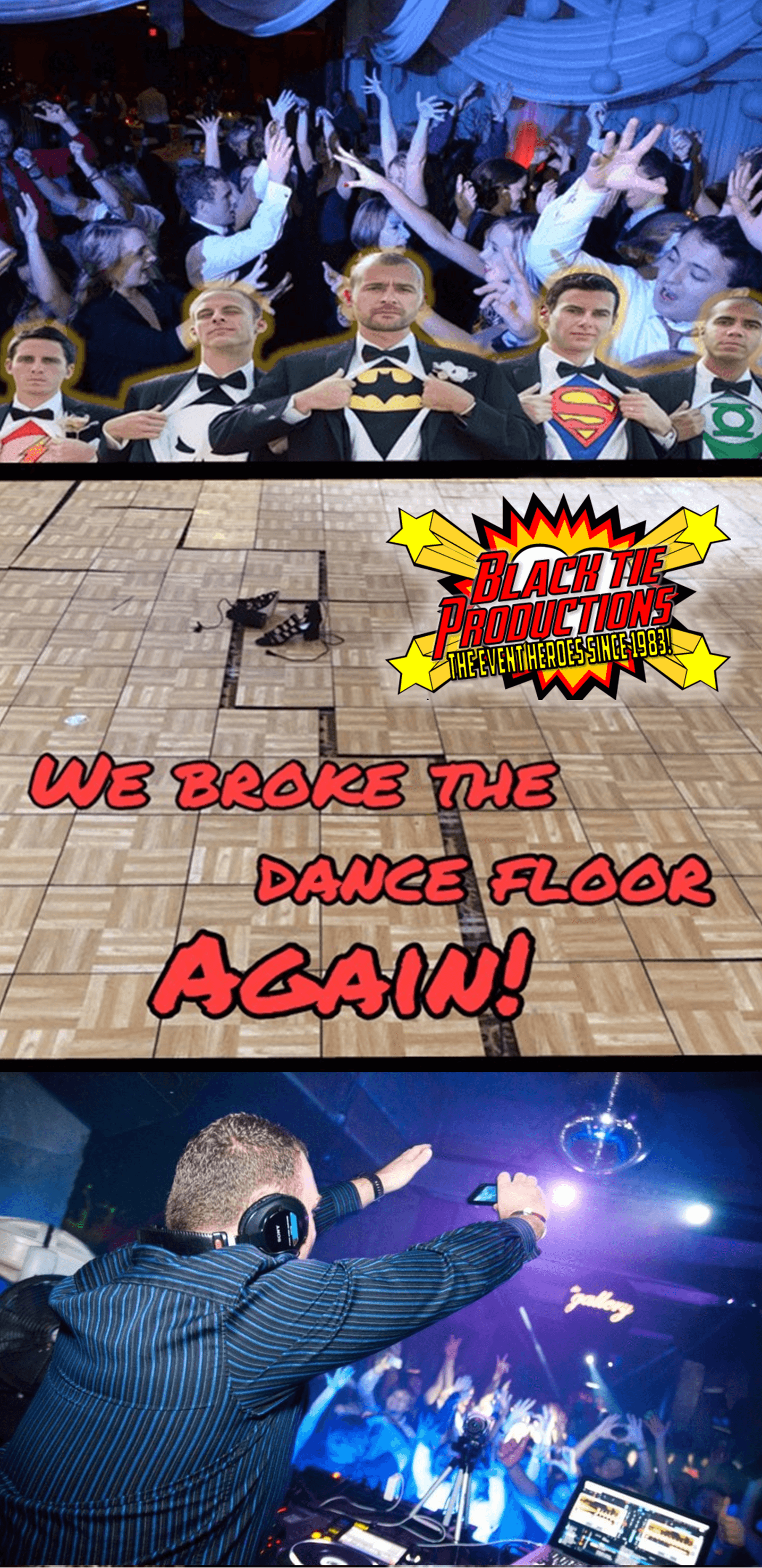 In the electrifying lair of rhythm and lights, a legion of heroes takes to the dance floor, capes billowing and masks gleaming. The sonic mastermind from Black Tie Productions unleashes waves of pulsating beats that supercharge the crowd. Meanwhile, a portal—a photo booth extraordinaire—snaps eternal memories of their epic showdown against monotony. Words blaze across the night: We shattered the dance floors limits once more!. :The Event Heroes at Black Tie Productions