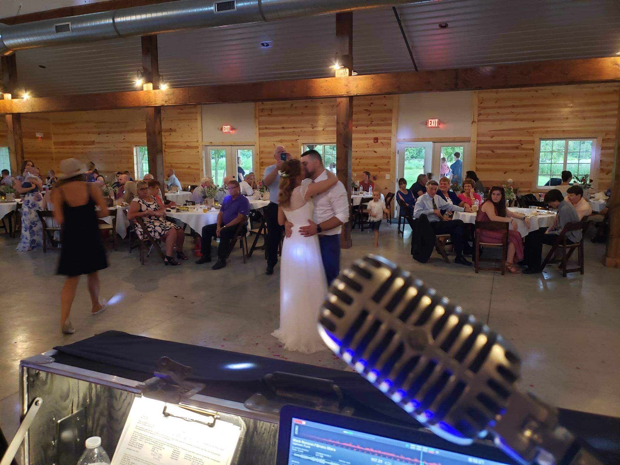 Amidst the electrifying glow of vibrant event lighting, a dynamic duo takes center stage in the grand reception hall. Their every move is framed by the silhouette of an iconic microphone, standing as a sentinel to their epic display. Around them, seated admirers gaze in awe, their faces aglow with pure delight as they witness this extraordinary spectacle unfold. :The Event Heroes at Black Tie Productions