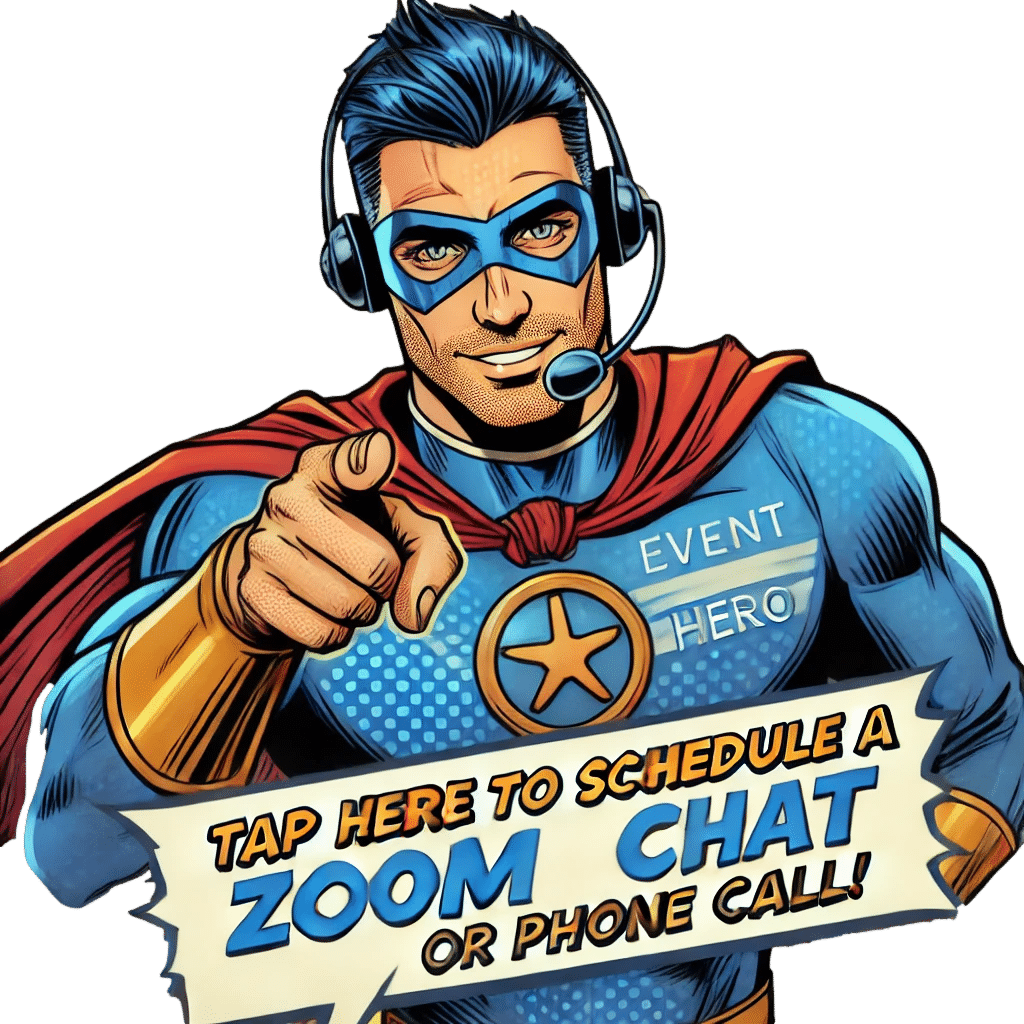 ![[Panel Background: A dynamic cityscape with skyscrapers and bright lights] *Comic image of a muscular superhero soaring through the sky in a sleek blue suit adorned with the emblematic Event Hero insignia. The superhero wears a futuristic headset, looking confidently into the distance. One arm is extended forward in a powerful gesture as if summoning action.* Speech Bubble: *Ready to connect and conquer? Tap here to launch into scheduling your epic Zoom chat or heroic phone call!*. :The Event Heroes at Black Tie Productions](https://blacktieproductions.com/wp-content/uploads/2025/03/file-6zWyCqx36hn4nnBo2Se2Wt_clipped_rev_2-300x300.png)