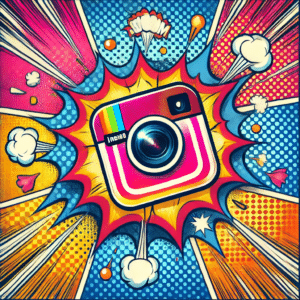 The Instagram logo blazes at the center, bursting with heroic energy and comic explosions amidst bold, vibrant patterns. :The Event Heroes at Black Tie Productions