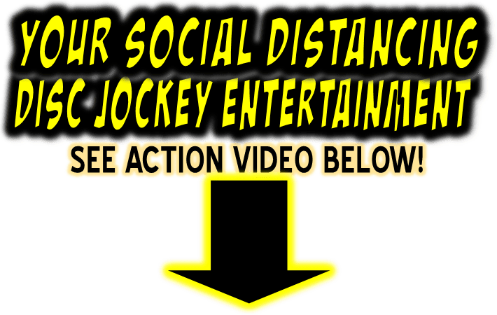 In bold hues of electrifying yellow and striking black, the message blazes across the screen: The Dynamic DJ Heroes of Social Distancing! Perfectly orchestrating all your Michigan wedding needs. Witness our superhero talents in action—see the epic video below! A large arrow points downward, guiding you to the marvels that await. :The Event Heroes at Black Tie Productions