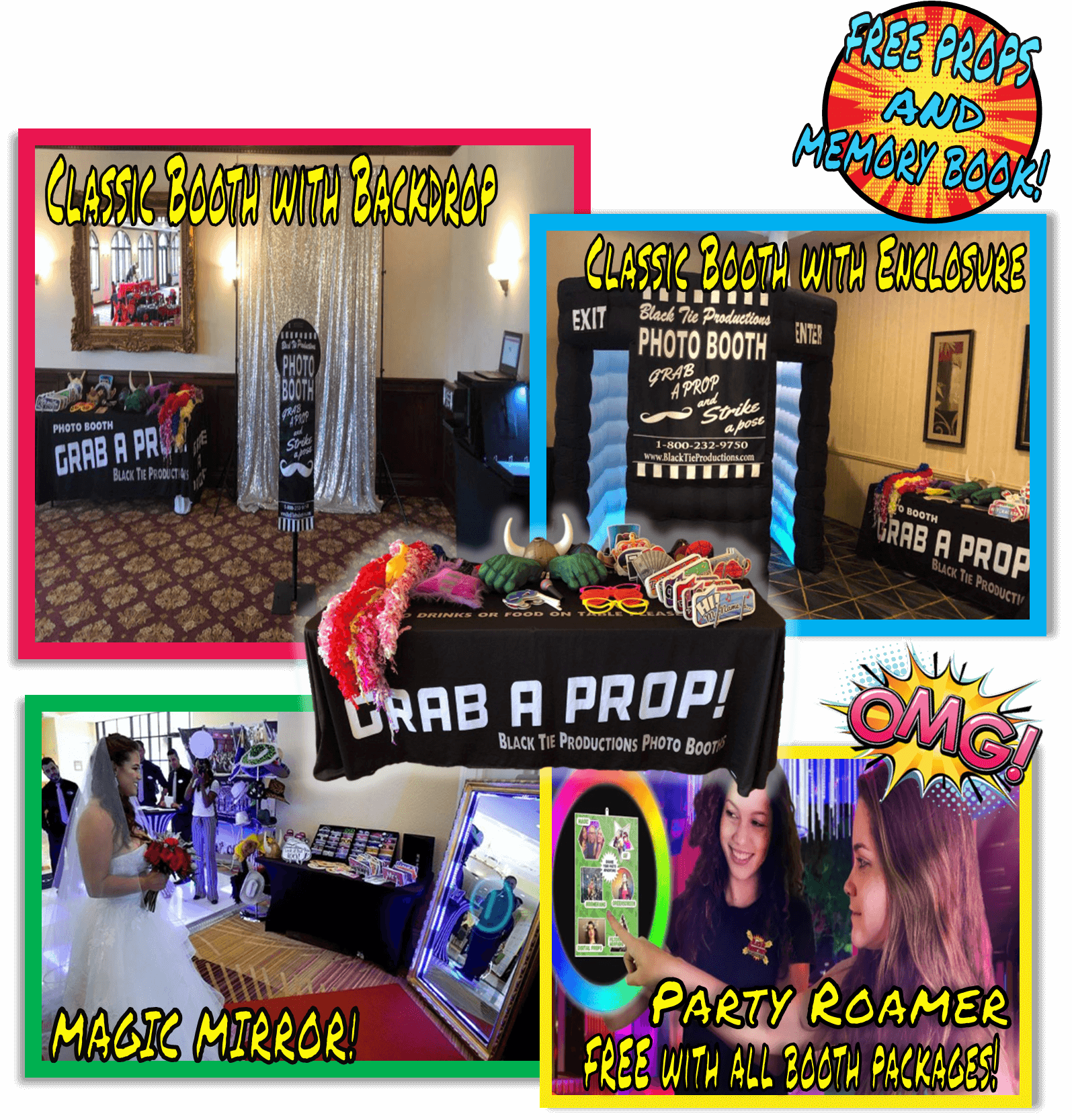 In a world where every event deserves to shine, Black Tie Productions swoops in with an arsenal of spectacular photo booth setups! Behold the legendary Collage of Captured Joy, a dazzling lineup featuring enchanted magic mirrors and the ever-roaming Party Roamer, ready to capture every epic moment. Whether its the timeless charm of the Classic Booth or arming guests with our Free Props and Memory Book, these powers unite to elevate any gathering into the extraordinary. This isnt just a rental—its your ticket to unforgettable memories, delivered by heroes of professional photo booth excellence!. :The Event Heroes at Black Tie Productions