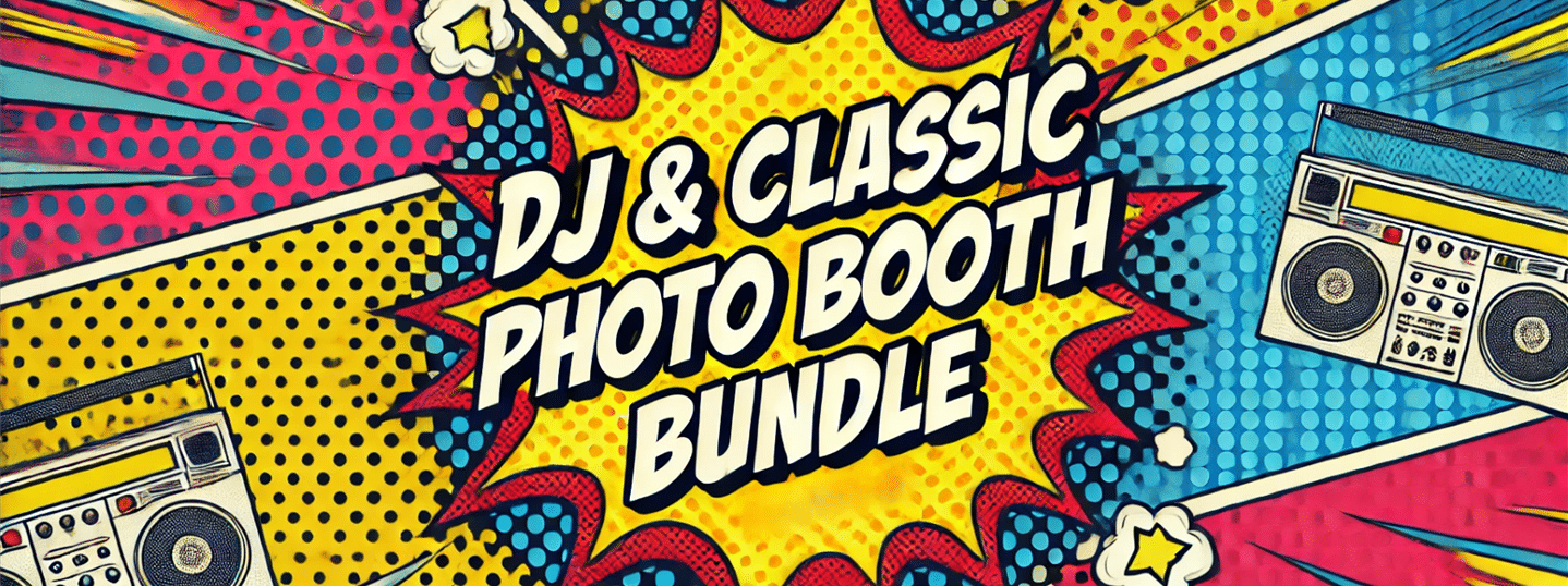 Comic-style Banner: DJ & Classic Photo Booth Bundle! *In a burst of vibrant colors and retro boomboxes, dynamic design elements leap off the page. The Event Heroes are here to transform your event into an unforgettable adventure!* With their super-powered innovation, watch as they elevate your experience to epic proportions. Unlock an instant price quote today and let the heroics begin!. :The Event Heroes at Black Tie Productions