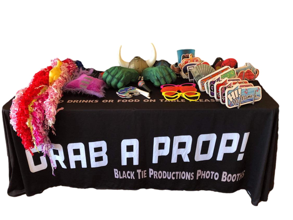 In the heart of the bustling gala, a mighty table stands, laden with an arsenal of whimsical props ready to transform any guest into a hero of their own making. Feather boas flutter like capes caught in a gust; a Viking helmet gleams with battle-ready pride; foam fists await those who wish to channel their inner powerhouses; and sunglasses conceal secret identities with effortless cool. Among these treasures, signs boldly declare: Grab a Prop! Black Tie Productions Photo Booths! Enhance your epic event with the brilliance of professional lighting or summon the Event Heroes for an instant price quote that will elevate your celebration to legendary status. :The Event Heroes at Black Tie Productions