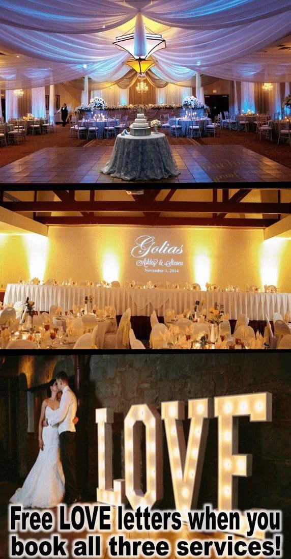 Behold the epic backdrops for your legendary union: a ceiling draped in shimmering splendor, illuminated with otherworldly radiance; a reception hall transformed into a realm of elegance by the craftmasters at Black Tie Productions; and two souls immortalized beneath the glow of colossal LOVE letters. Seize this moment to book your place in matrimonial history, and receive the mighty LOVE letters as our gift to your Michigan wedding adventure!. :The Event Heroes at Black Tie Productions